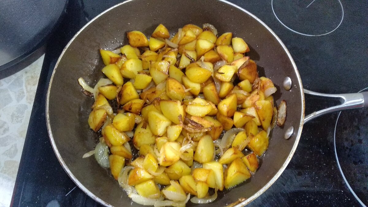 Картошечка!)!)! Даже песня про неё пионерская есть, думаю и не одна). Едим мы её с детства и по сей день с превеликим удовольствием! Недавно был у приятеля в гостях, ну и как бывает, закусывали). Мамка его нажарила картохи. Вкусно получилось и я обратил внимание на не привычный мне способ нарезки. Такие пирамидки/треугольнички. - В чём прикол, спрашиваю! На что мне хозяйка объяснила, кусочки при жарке не слипаются и картохи за раз можно пожарить больше. Казалось бы мелочь, а ведь работает! Крайний месяц жарю только так и по-старому не желаю. Вот такой велосипед).