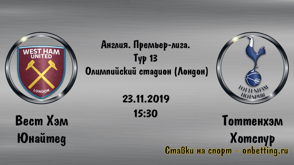 Вест Хэм Юнайтед –Тоттенхэм Хотспур статистика личных встреч Статистика личных встреч Вест Хэм Юнайтед – Тоттенхэм Хотспур говорит нам о следующем: по четыре раза побеждали команды в очном противостоянии и однажды разошлись миром. Крайний поединок на выезде выиграли молотобойцы с минимальным счетом 1:0 Вест Хэм Юнайтед –Тоттенхэм Хотспур обзор игровых кондиций В двух последних турах Вест Хэм дважды проиграл, оба раза пропустив по 3 мяча, правда дома, в матче с Ньюкасл Юнайтед, молотобойцы все же забили 2 мяча. Команда находится не в лучшей игровой форме и им просто необходима победа в домашнем матче.Тоттенхэм Хотспур в последних трех турах АПЛ добыл всего 2 очка: проигрыш и две ничьи со счетом 1:1. Чуть лучше ситуация в матчах Лиги Чемпионов, там они дважды обыграли Црвену Звезду с общим счетом 9:0, но уровень команды не тот, что бы опираться на эти матчи.