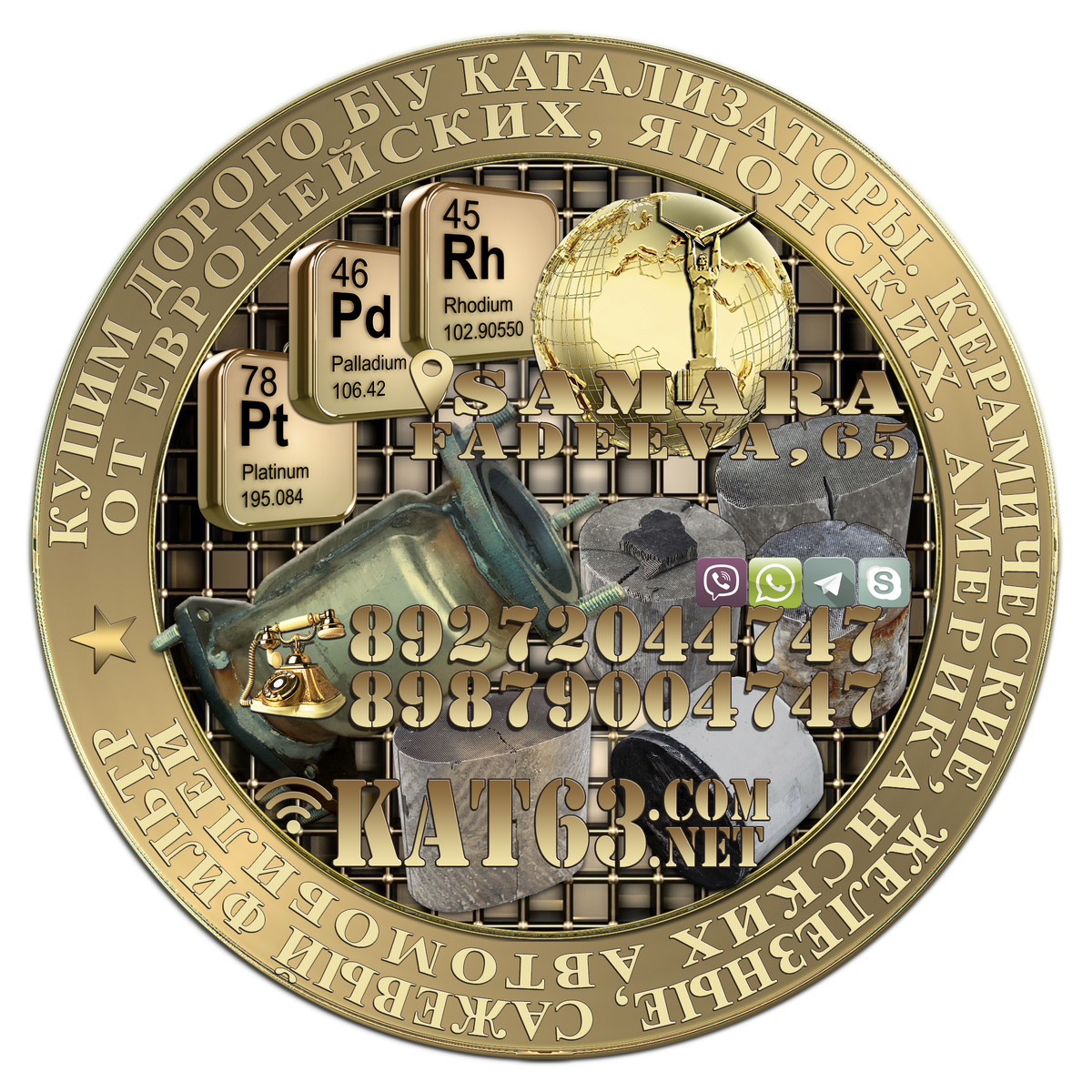 Компания «КАТ63» на постоянной основе оптом и в розницу закупает керамические и металлические автомобильные и промышленные б/у катализаторы (нейтрализаторы) и извлеченные внутренности с катализатора. Цены за вырезанные внутренности с б/у катализатора до 25 000 руб/кг. Приём автомобильных б/у катализаторов всех видов и типов: керамические, металлические катализаторы и сажевые фильтры. Интересуют лишь сами внутренности катализатора, сама начинка, вставка, картридж (керамика или металл). Купим катализаторы от отечественных и импортных автомобилей любых марок. Предлагаем высокие, выгодные конкурентоспособные цены и гибкую систему оплаты. Гарантируем выполнение договорных обязательств, оплата за наличный и б/н расчет, при необходимости возможен выезд специалиста, к каждому поставщику осуществляется индивидуальный подход. Продать б/у КАТАЛИЗАТОР БЕЗ ПОСРЕДНИКОВ! Мы работаем с любыми регионами России и ближнего зарубежья, принимаем б/у катализаторы почтой РФ, курьерскими службами и транспо
