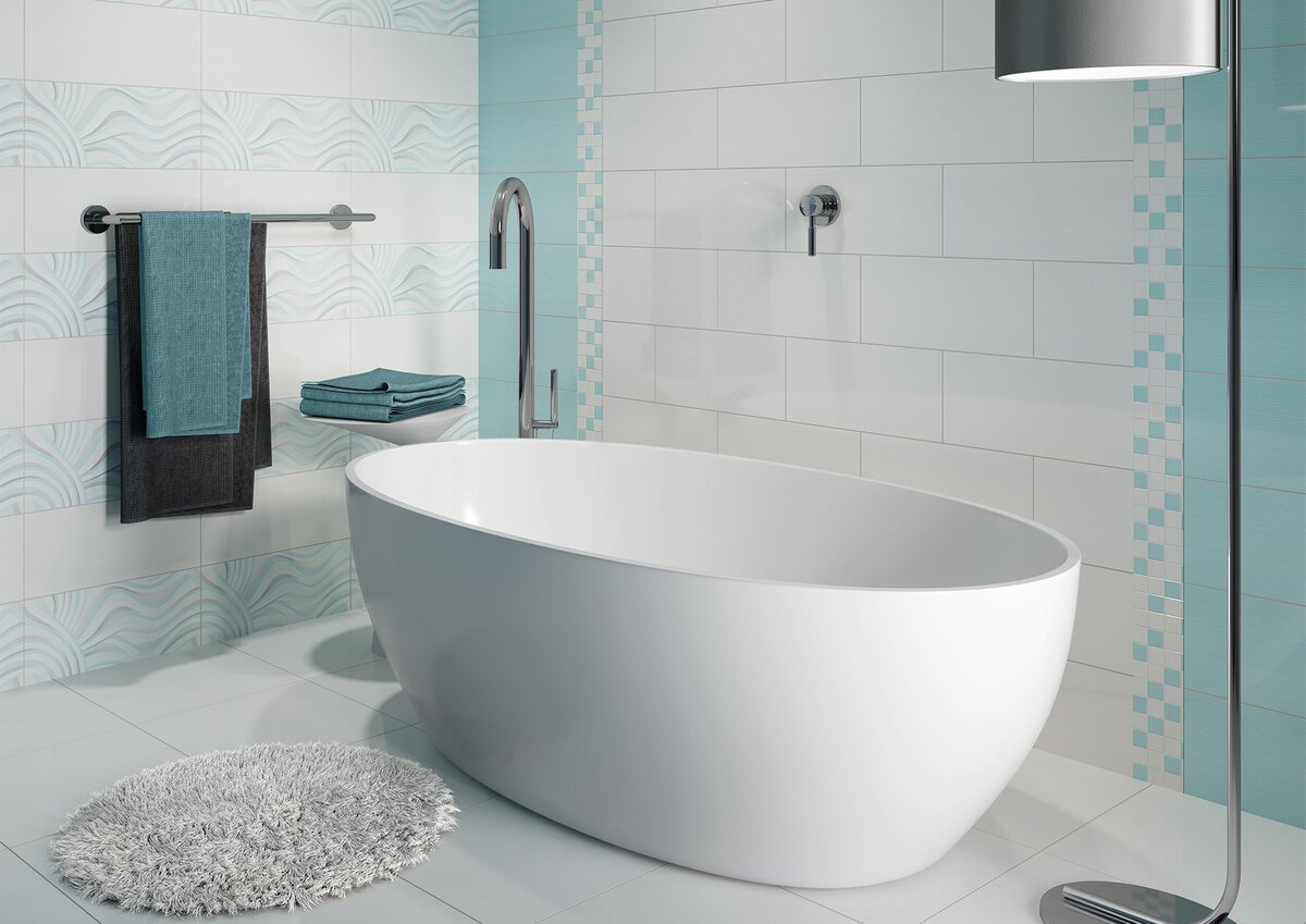 В традициях большинства народов белый цвет ассоциируется с чистотой, свежестью, спокойствием и непорочностью. Поэтому белая плитка в ванной будет создавать в ней атмосферу чистоты, релакса и вдохновения. Поскольку белый цвет сам по себе нейтрален, его легко сделать фоном для воплощения любых своих дизайнерских идей, добавив желаемые цветовые акценты.