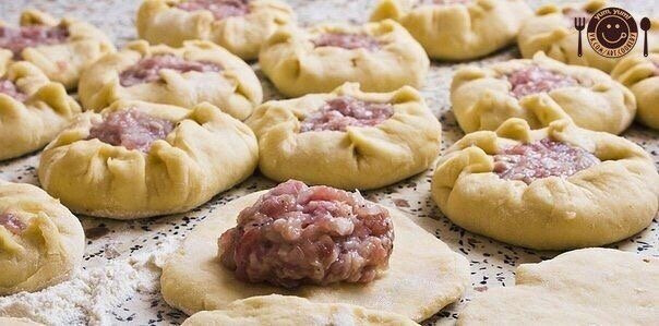 Настоящий татарский вак беляш Ингредиенты: Для теста: Яйцо куриное - 1 шт. Кефир – 120 мл. Мука пшеничная – 2 стакана Для начинки: Яйцо куриное – 1 шт. Картофель – 4-5 шт. Мясо или фарш – 500 г Лук репчатый – 2 шт. Масло сливочное – 70 г Перец черный молотый Соль Специи – по вкусу Приготовление: Из вышеперечисленных ингредиентов готовим тесто, чтобы оно получилось мягким и эластичным. Делим тесто на шарики размером с мячик для пинг-понга. Берем мясо, нарезаем его на небольшие кусочки. Картофель и лук очищаем и нарезаем кубиками. Соединяем мясо и картофель, солим, перчим, добавляем по вкусу специи и хорошенько перемешиваем все ингредиенты. Каждый шарик из теста раскатываем в тонкую лепешку, на середину которой выкладываем начинку, а сверху кладем кусочек сливочного масла. Края вак беляша собираем красивой оборочкой , не защипывая края, так, чтобы получился мешочек с начинкой по центру. Выкладываем беляши на противень, устланный пергаментом, смазываем каждый взбитым яйцом и ставим их