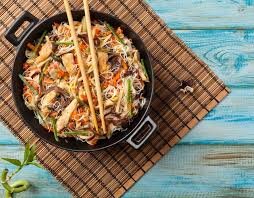 Существует большое количество блюд в основу которых входит фунчоза. Одно из них-фунчоза с овощами и куриным филе. К тому же, оно обладает ярким и запоминающимся вкусом. Результат приятно вас удивит, а само приготовление не займетзаймёт много времени. Ингредиенты: 1. Куриное филе (грудка) - 1шт; 2. Фунчоза (стеклянная лапша) - 150г; 3. Средняя морковь-1шт; 4. Сладкий перец-1шт; 5. Лук-порей (берём белую часть) - 1шт. (10 колец); 6. Зелёный лук-2шт; 7. Свежий укроп-1-2 веточки; 8. Семена кунжута-2ст. л. ; 9. Чеснок-1 зубчик; 10. Свежий имбирь-5 небольших кусочков; 11. Подсолнечное масло; 12. Соль и перец по вкусу. Интересный факт: Лапша фунчоза готовится из зелёнызелёные бобов и нарезается тоньше обычной лапши. В приготовлении блюд удобнее использовать её, нежели сами бобы так, как в ней сохраняются все полезные свойства и на саму готовку уходит меньше времени. Пришла к нам лапша из Азии, от других разновидностей отличается нежной консистенцией, приятным вкусом и прекрасно гармонирует