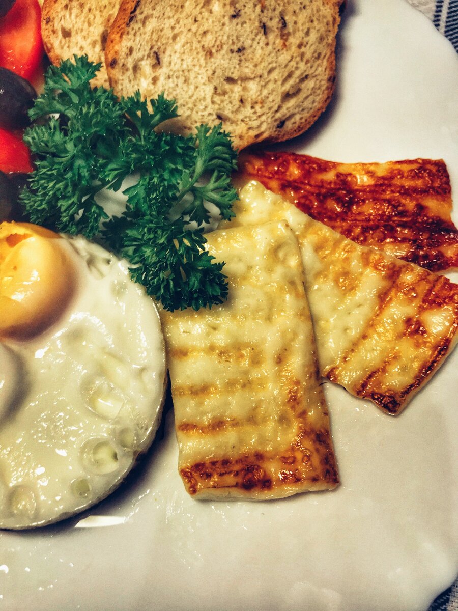 Тягучий жареный сыр с хрустящей корочкой. Этот блюдо приятно удивит ваших гостей и семью. Ингредиенты: 👇 Приготовление: 👇 ✔️ Твердый сыр нарежьте кусочками толщиной 0,5 см. Поджарьте на разогретой сухой сковороде-гриль сыр. Каждую сторону жарим около минуты. ✔️ На тарелку выложить жаренное яйцо, половинки помидор, нарезанные полукольцами огурцы и оливки. ✔️ Овощи посолить, полить оливковым маслом. Аккуратно перемешать. ✔️ Рядом выложить ломтики жареного сыра и поджаристого отрубного хлеба. ✔️ Украсить зеленью. ☝ Совет: Сыр подавать горячим, тогда вы ощутите всю прелесть тягучей лавы! Приятного аппетита! Если вам понравился рецепт, пожалуйста, поставьте лайк 👍 и не забывайте подписываться на канал. Спасибо за внимание! ❤️ ❤️ ❤️