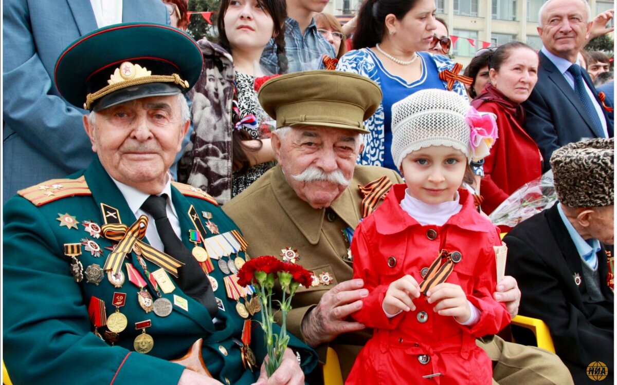 (На фото в центре, 9 мая 2019 года, Махачкала)