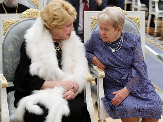 Президент Владимир Путин вручил в Кремле государственные награды. Действо сопровождалось двумя интригами. Татьяна Доронина на церемонии о чем-то шепталась с президентом, а потом просто вцепилась в его руку, и ВВП увел ее с собой. Вторая интрига — почему среди награжденных не оказалось Аллы Пугачевой, которая в этом году отметила 70-летний юбилей.