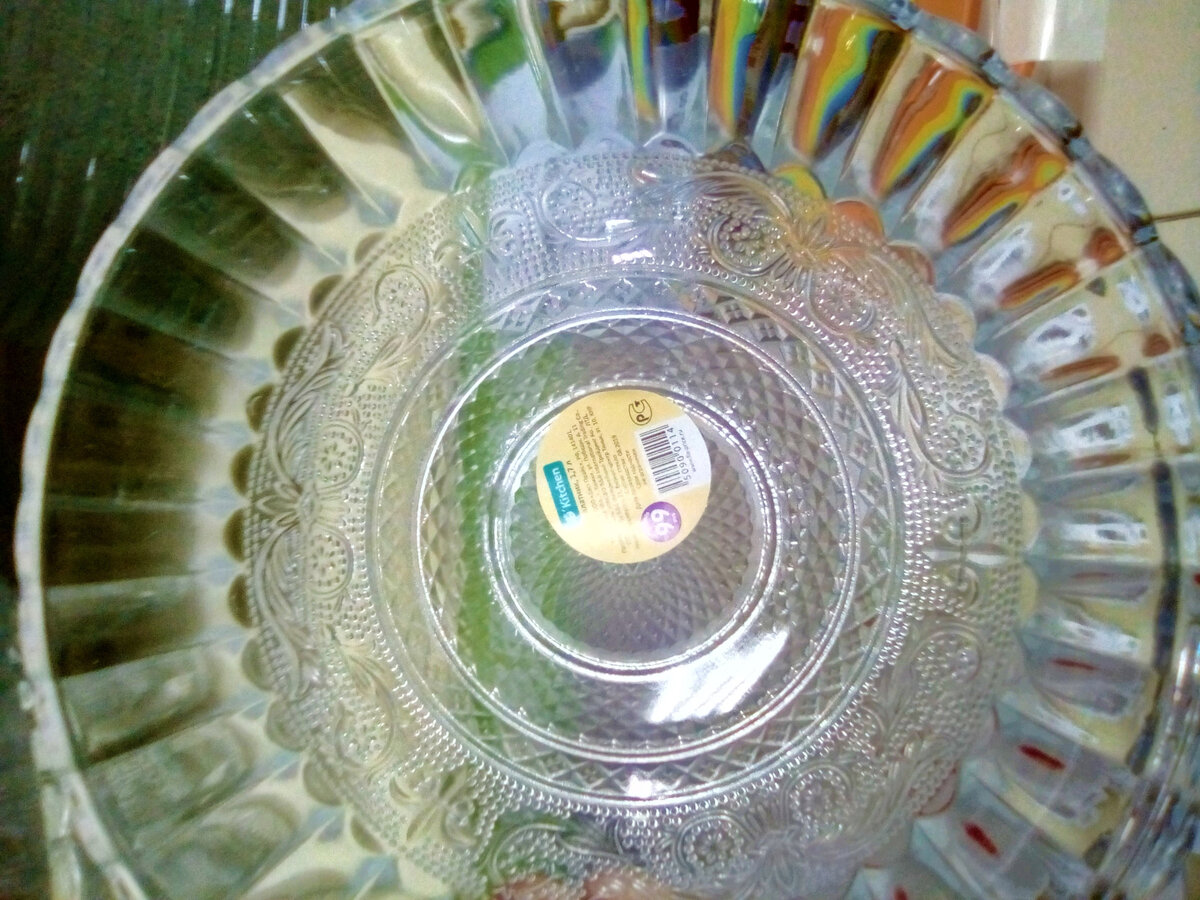 Изготовлен из стекла,но напоминает вид хрустальной посуды. Ёмкость 1,7 литра.