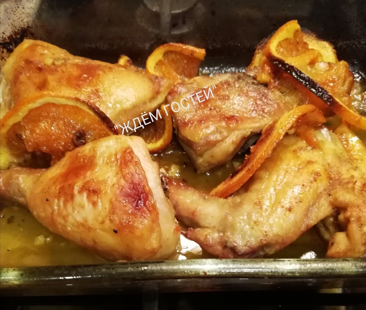 Нежная и ароматная. Сегодня будем готовить очень вкусную курочку с апельсином. Это блюдо способно украсить обед или ужин, оно подойдёт для любого праздничного стола, будет его украшением. Процесс приготовления очень простой и быстрый, но результат вас приятно удивит. Курочка получается мягкой, нежной, сочной, с приятной кислинкой апельсина. Просто пальчики оближешь! Обязательно приготовьте это блюдо. Ингридиенты: - Сок одного апельсина - Один апельсин порезанный на кружочки - Мёд 1 ст ложка - Карри 1 ч. ложка без горки - Перец красный молотый 1/2 ч. ложки - Масло подсолнечное 2 ст. ложки - Куриное мясо 700 грамм (можно использовать любые части по вкусу) - Чеснок 2 зубчика Приготовление: 1. Всё компаненты для маринада тщательно перемешать. 2. Тушку курицы помыть, порезать на кусочки и смешать с маринадом. 3. Оставить на 2 часа мариноваться. Затем апельсин порезать на кружки и положить между кусочками мяса. 4. Поставить стеклянную форму в духовку запекаться на 30-40 мин.
