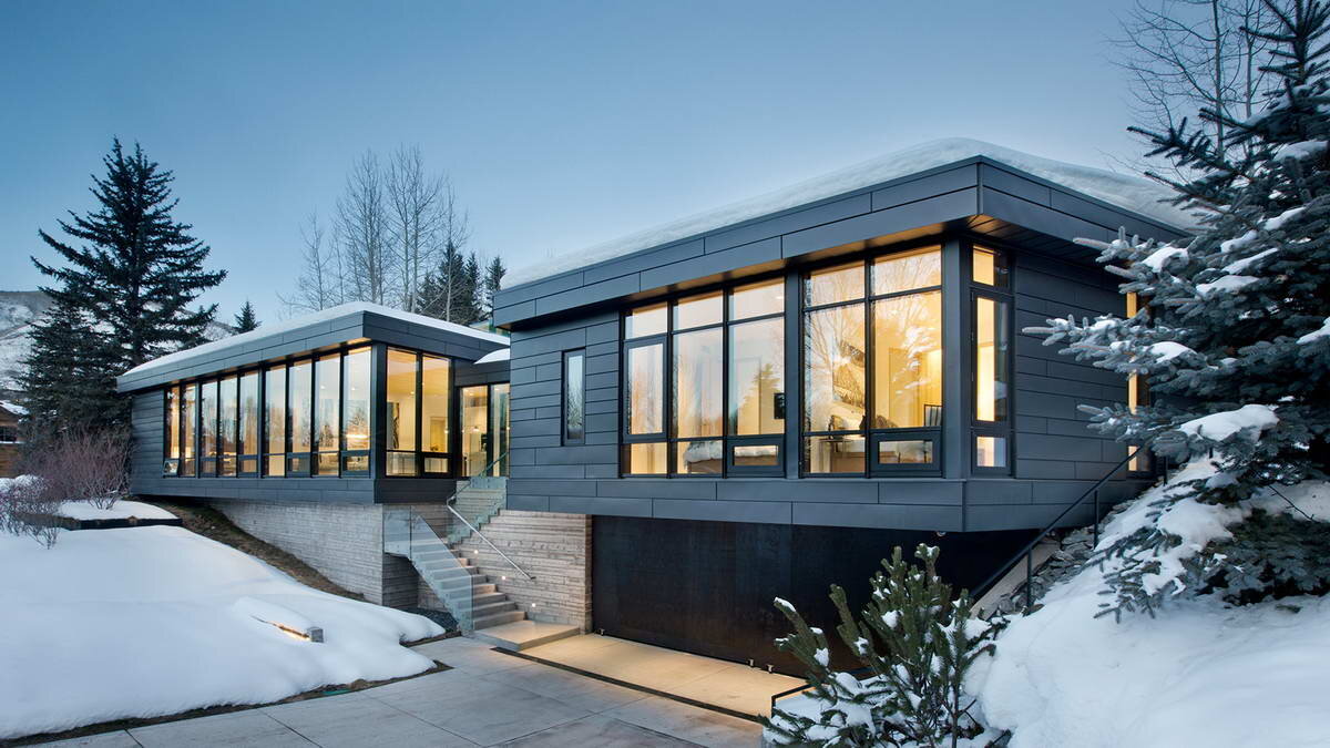 Этот простой дом с высоким бетонным цоколем, расположенный на наклонном угловом участке в нескольких минутах ходьбы от центра города, обладает достаточным солнцем и прекрасным видом на гору Аспен. Небольшой участок выходит на активную улицу и с трёх сторон связан с соседними зданиями. В ответ на условия на месте, архитекторы подняли дом с земли — стратегия, которая обеспечивала конфиденциальность и обзор для жителей, а также насколько это возможно отдалила жилую зону от расположенной рядом улицы. Дом состоит из оцинкованных объемов с плоской крышей, которые стоят на цоколе из монолитного бетона. Одна сторона уровня земли занята гаражом. Бетонная лестница со стеклянными стенами ведет к главному входу, который доставляет посетителей в центральный коридор. Коридор соединяет два крыла. Один содержит кухню, гостиную и главную спальню, а другой — две спальни и семейную комнату. Крылья обвивают компактный внутренний двор сзади. Название: Резиденция Зале (Zale Residence)