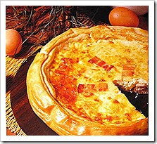 - Слейте масло в небольшую кастрюлю, разбейте туда же яйца и налейте сливки. Взбейте электромиксером. Затем слегка посолите и приправьте перцем. Добавьте лук с беконом , перемешайте и отставьте. Нагрейте духовку до 220 градусов.