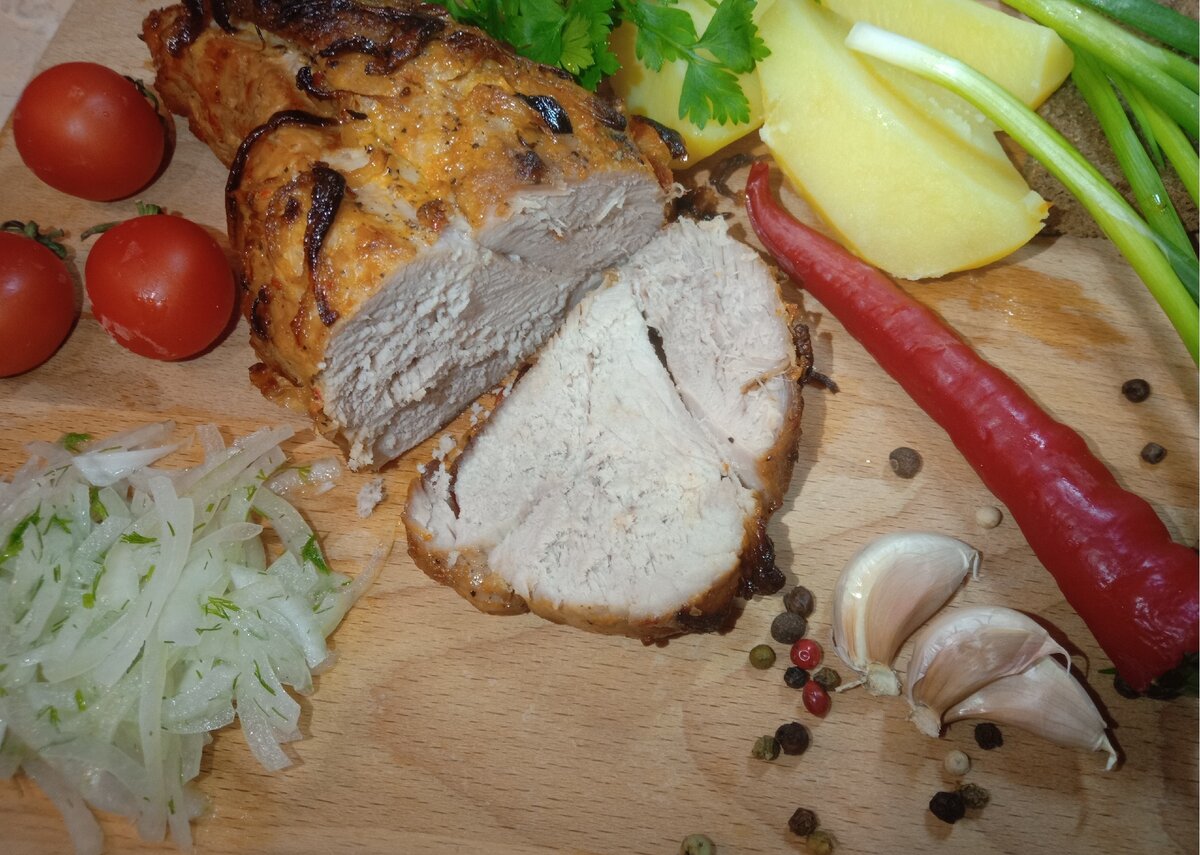 Рецептов запеченного мяса много, но этот мой самый любимый. Таким способом приготовления любое мясо получается потрясающим: очень сочным, слегка остреньким и безумно вкусным. Обычно такое мясо я готовлю на праздники и все кто пробует - просят рецепт, а весь секрет в маринаде. Для приготовления понадобится: Сегодня я готовлю свинину, но и для птицы рецепт тоже хорош. Нежирное мясо один килограмм солю и перчу. Соли кладу 1 чайную ложку. Нарезать полукольцами одну большую луковицу. Помять вместе с мясом, чтоб лук сок пустил. Оставить на 15 минут мариноваться. К мясу добавить 1 столовую ложку острой аджики. Аджику добавляю которую готовила сама, она есть у меня на канале. В маринад также идет одна столовая ложка дижонской горчицы. Если нет дижонской, то можно смешать майонез с обычной горчицей 1/1. Все ингредиенты хорошо втереть в мясо и мариновать 2 часа. Уложить мясо в пакет для запекания с луком и маринадом. Выпекать 1,5 часа при температуре 180 градусов. За 30 минут до конца пригото