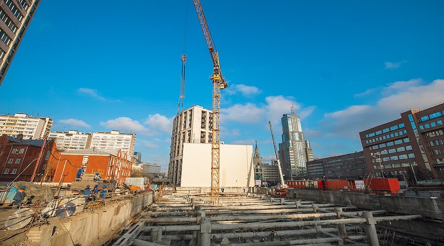 Впереди – завершение демонтажа конструкций старого здания на всех 4 участках, устройство новой фундаментной плиты и строительство подземных этажей комплекса.