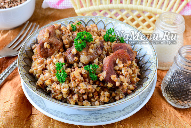Ингредиенты: ✔️гречка – 250 г; ✔️свинина – 250 г; ✔️лук – 80 г; ✔️масло растительное - 2-3 ст.л.; ✔️вода – 400 г; ✔️соль, перец – по вкусу. 🥩Нарезать мякоть свинины крупными кубиками, обжарить вместе с произвольно нарезанным луком на сковороде с добавлением растительного масла, пока не появится румяная корочка 🔥Жарить сперва на сильном огне, а затем на минимальном под крышкой. В конце добавить соль и перец по вкусу 💦Высыпать промытую гречку к мясу и залить водой, немного подсолить 🥄Довести до кипения и тушить под крышкой на медленном огне 15-20 минут. В конце приготовления блюдо перемешать https://namenu.ru/11567/Grechka_s_myasom_na_skovorode/