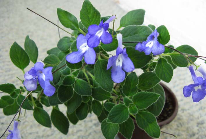 Всем цветоводам, которые любят выращивать растения из семейства геснериевых, будет приятно познакомиться со стрептокарпеллой. Стрептокарпелла выделена в отдельный вид из рода стрептокарпус, она неприхотлива, имеет примерно те же требования к условиям содержания, что и сенполии, так как является их родственницей. Стрептокарпелла - ампельное растение с ярко-зелеными листочками на длинных побегах. Она может достигать до 30 см в диаметре, вырастая довольно быстро и активно цветет. Ее цветы лилового цвета можно назвать уменьшенной копией цветков стрептокарпуса, они элегантной возвышаются над листвой на длинных цветоносах. В настоящее время выведены сорта с белыми и красными цветками. Стрептокарпелла хорошо развивается на достаточно освещенном подоконнике, для нее подойдет восточное, юго-восточное и юго-западное окно. Однако от прямых солнечных лучей растение необходимо оберегать. Также не выносит стрептокарпелла и холодных сквозняков. Так как это ампельное растение, то его лучше всего разме