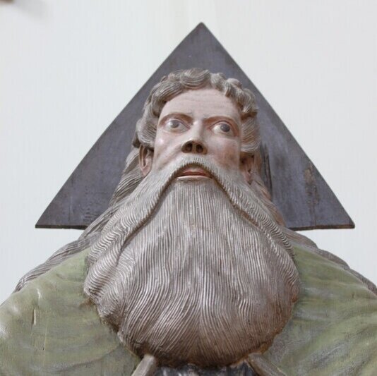Узнали старого проказника? Бог-Отец. Командир небесной армии. Тот самый, что в полевых условиях провёл операцию на ребре Адама, затопил к чертям Планету и сломал Вавилонскую башню. Именно ему Иисус кричал с креста «За что ты оставил меня !?» Господь Саваоф, Иегова,Аллах - это всё он. Кому как больше нравится. Его строжайше запрещали изображать. Даже он сам делал это. Иудеи и мусульмане послушались. Христиане нет. Очень уж привыкли они к языческим идолам. Как просить здоровья и финансового благополучия у того, кого не видишь? Тут даже сам Бог не указ. Господа Саваофа активно рисовали и делали его скульптуры. Богохульские художества запрещали и в 787 году на Вселенском съезде, потом в 1655 на Великом московском соборе. Но, как говорится, не на тех напали! На голове у Бога-Отца вы можете заметить равносторонний треугольник. Это его отличительная черта. Ни у сына, ни у святых нимба такой формы нет.😇 Оказывается треугольник символизирует три ипостаси Бога. Точно так же эту фигуру