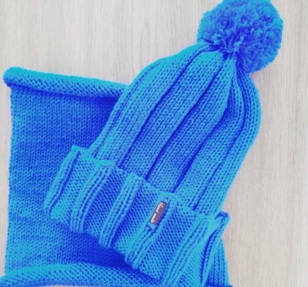 Связать за вечер вот такой комплект для мальчика вполне возможно. В вязании только лицевые и изнаночные петли. Снуд вязать на круговых спицах лицевыми петлями. Подойдет начинающим вязальщицам. Комплект для мальчика-шапка и снуд синей пряжей. Для вязания комплекта понадобится: пряжа 150г (50г/140м), круговые спицы или набор чулочных спиц № 3.5 для шапки и № 4.5 для снуда. Узор: количество петель должно быть кратно 9 плюс 2 кромочные для вязания на прямых спицах. При вязании на круговых спицах эти 2 петли не прибавляем. Изнаночная и лицевая гладь: 6 петель лицевой гладью, 3 петли изнаночной. Комплект для мальчика - шапка и снуд: обхват головы 52 см. Набираем на спицы 90 петель и вяжем таким образом: 1 ряд шапки 6 петель лицевыми петлями, 3 изнаночные. Таким образом вяжем до конца ряда. Со 2-го ряда вязания шапки вяжем в высоту 17 см. Далее в изнаночных петлях убираем по одной петле, для этого провязываем по 2 изнаночной вместе. Через 4 ряда убавляем ещё по одной петле в изнаночных пет