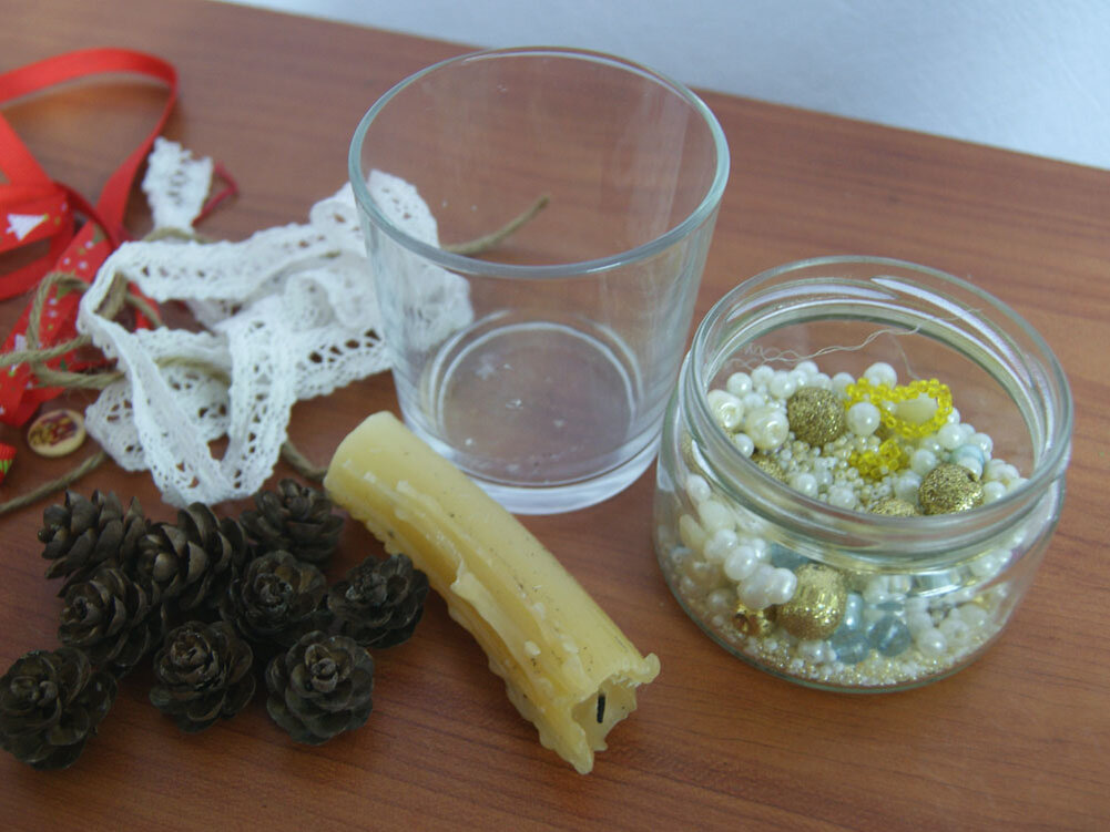Новый год все ближе, а новогоднего настроения все нет? Давайте создавать его сами, наполняя свой дом праздничным уютом. На моем канале вы найдет статьи о том, как и чем украсить дом к новому году, а так же много мастер-классов с новогодними поделками, которые будут интересны и взрослым и детям. Подписывайтесь на канал, Вас ждет много интересного! Сегодня покажу очень простой способ сделать новогодний подсвечник, из того, что найдется под рукой и на его создание уйдет всего несколько минут. Для этого нам понадобится: Ставим свечу в центр стакана и заполняем пространство вокруг нее украшениями. Я использовала маленькие шишки и золотые и жемчужные бусины. Сверху посыпала бисером, что бы он застрял в шишках и они выглядели наряднее, а остатки бисера скатились на дно, чтобы оно не казалось пустым. В конце украсила сам стакан обвязав его кружевом и бечёвкой, а так же прикрепила небольшую новогоднюю пуговку.
