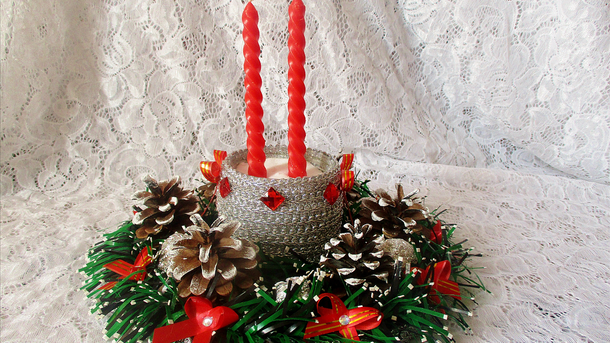 Новогодний подсвечник своими руками.Рождественский подсвечник своими руками.