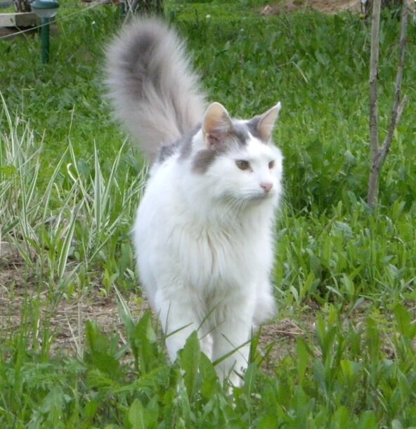 Когда мы только начинали обустраивать свою дачу, то наш Тимка был в ближайшей округе единственным котом, да и много участков еще неосвоенных было поблизости. Мышей было очень много, и Тимка наш отрывался по полной. Он вообще отказывался есть еду, которую мы ему предлагали - предпочитал питаться свой добычей. И вот настал момент когда мыши уже перестали в него помещаться :)) Мое утро начиналось с того, что я выходила из домика и убирала с дорожки передушенных моим котом за ночь мышей в ведерко и закапывала под кустами (не пропадать же добру), хоть на удобрение сгодятся. И вот перед котом встала проблема - куда переизбыток добычи девать. Охотиться прекратить коту и в голову не могло прийти, потому как мыши практически под ноги (лапы) кидались сами. А разбросанных по участку мышек хозяйка почему-то не ест, а непрактично на удобрение переводит. Наверно он считал это оскорблением, поэтому стал делиться ими со всеми, кроме меня, кто хоть мало-мальски подходил под понятие "свои". Соседка