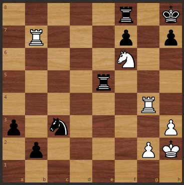 Шахматная задача. Черные пешки уже дошли ло b2 и а3. Белым впору сдаться. Но ход белых и белые выигрывают (ставят мат в несколько ходов).