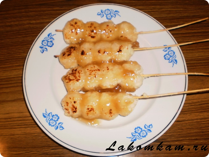 Митараси-данго — поджаренные рисовые колобки в сладком соусе.