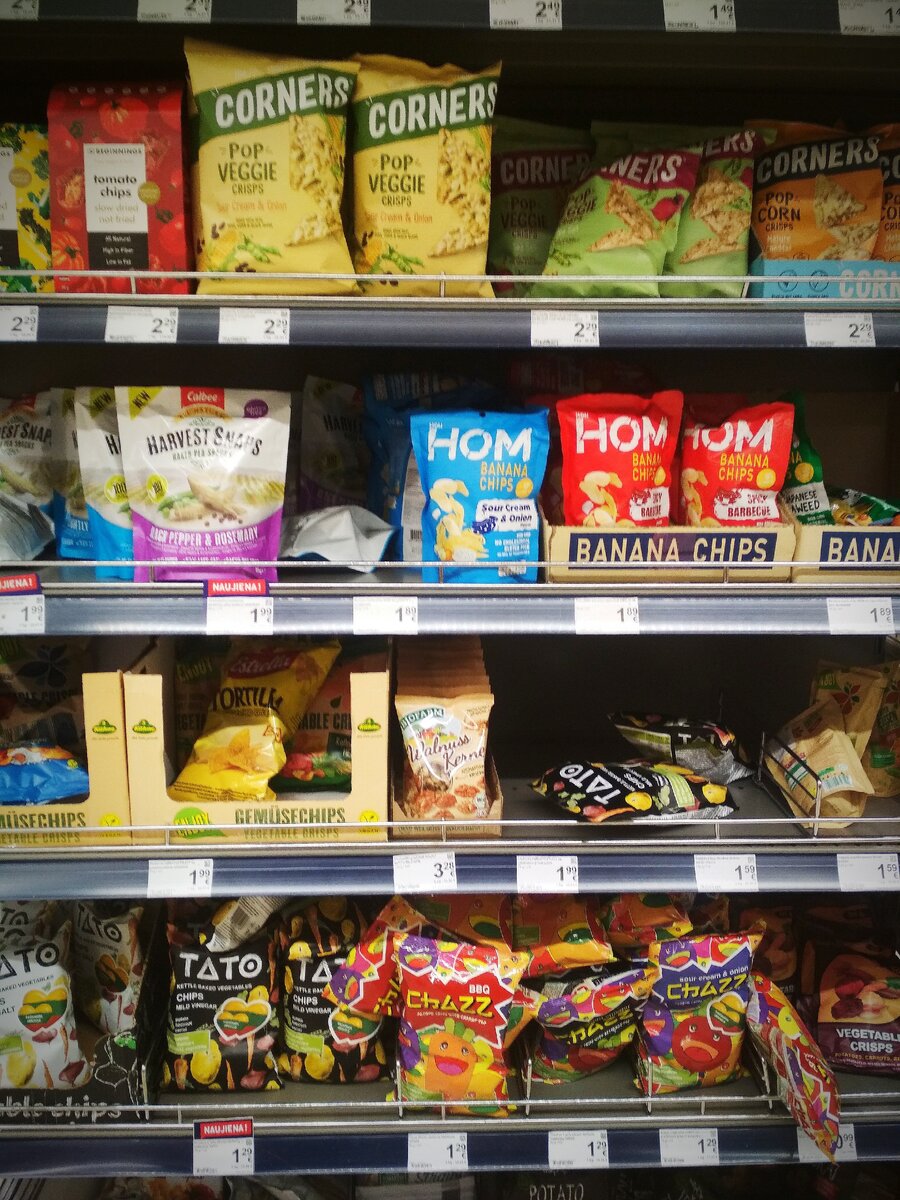 Разных печений и других хрустяшек здесь очень много, и главное отличие от наших - в их составе рапсовое, а не пальмовое масло. Считается, что оно более безопасно для здоровья.