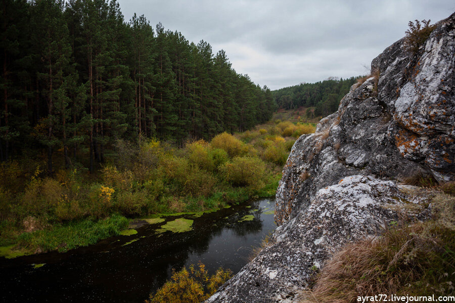 Про скалу с петроглифами я знал, но найти самостоятельно вряд ли смог бы. Поэтому поехал в компании со знающим человеком. Скала называется Ирбитский Писанец. В названии сразу два местных топонима: река Ирбит и село Писанец. Много раз ездил, но не догадывался не то, что про наскальные изображения, даже о наличии скал вообще. В этих местах Уральские горы уже полностью сходят на нет, практически начало равнины. Скалы на берегу было полной неожиданностью. Впрочем, как и красивые виды. Учитывая, то, зачем мы здесь, пейзажи были приятным бонусом. Хотя смотря, что еще считать бонусом, а что основной целью. Я сразу четко представил, какие чудесные картинки здесь можно сделать на рассвете или на закате, или, скажем, в туман. Самое интересное внизу. Спускаемся к самой воде. Окаменелости и древние раковины в камне свидетельствуют о почтенном возрасте скалы. А вот и древние письмена. Видите изображение человека? Петроглифы на урале выполнены преимущественно краской, высеченных я еще не встречал.