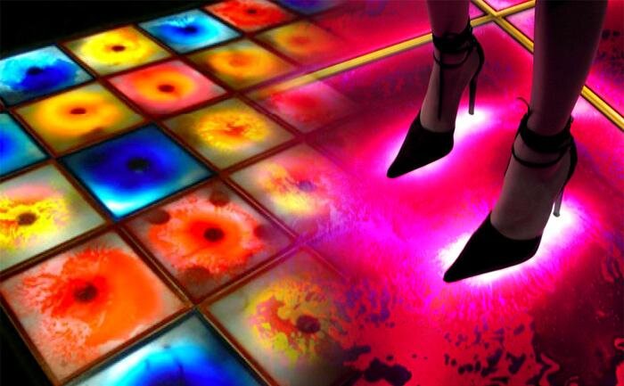 Ее именуют живой плиткой, т. к. она может изменять цветовую гамму и рисунок. Во время движения по полу, который состоит из такой плитки образуются всевозможные рисунки и разводы. Они не могут не притянуть всеобщее внимание и восхищение. Благодаря этим возможностям, плитка используется в качестве строительного материала для оформления детских комнат, ресторанов и различных развлекательных комплексов.