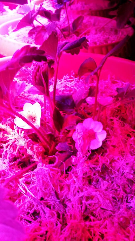 Как выяснилось, задача вполне решаемая. Главная - найти рассаду ремонтантной клубники. В ноябре крупные компании уже завершили продажи саженцев земляники, но в небольших компаниях или у садоводов -любителей купить клубнику можно в течение всего года. Желательно, чтобы розетки были уже в стадии бутонизации. Клубника теплолюбивое растение, на подоконнике ему может быть холодно. Поэтому в нашем случае мы использовали небольшой металлический стеллаж. Подойдут и деревянные, которые продаются в ИКЕА и ЛЕРУА МЕРЛЕН. Горшок для посадки лучше выбрать не менее 3 л. с дренажными отверстиями и поддоном. На дно необходимо насыпать керамзит. Очень полезно замульчировать землю мхом сфагнум. Каждый уровень освещается одним фитосветильником мощностью 40Вт. Фитосветильники вот здесь www.fitoled.pro. Высота подвеса фистосветильника над клубникой – 25см. Освещение включаем в ночное время на 14 часов с 20-00 до 10-00. Для увеличения освещенности, рекомендуем закрыть стеллаж со всех боков фольгированным
