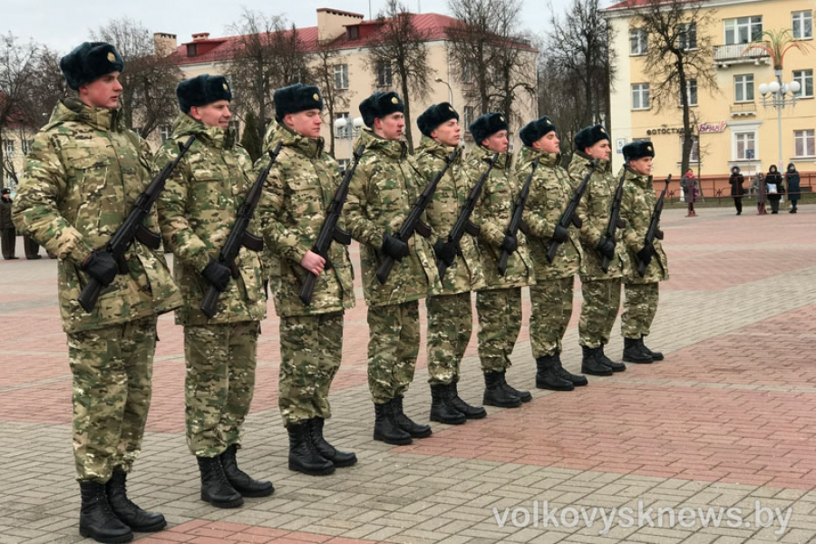 С августа этого года для белорусских юношей, достигших 18 лет, начался важный и очень волнительный период жизни — осенний призыв в армию. Кто-то из парней только отправился в воинскую часть, а кто-то уже прошел определенный путь подготовки и теперь удостоен чести принять военную присягу. Среди последних — новобранцы войсковой части 7404. Клятву на верность Родине они произнесли сегодня перед руководством и своими родными. Всего 26 ребят, которые будут служить в Волковыске, Гродно и Барановичах. Перед торжественным мероприятием, которое началось в полдень, руководство Волковысского района, представители части, силовых структур и общественных объединений посетили сквер Памяти и сквер Воинов-интернационалистов, где возложили цветы в память о погибших. После чего все участники мероприятия собрались на главной площади города. Среди них — родные, близкие, друзья «новоиспеченных» солдат, а также представители различных структур и организаций: заместитель начальника управления боевой службы —