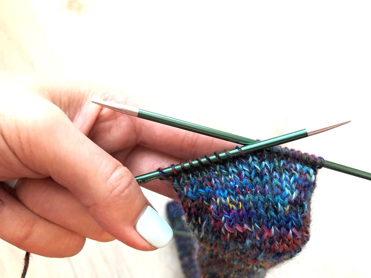 Носки спицами с простым узором из изнаночных петель, ч. 2
