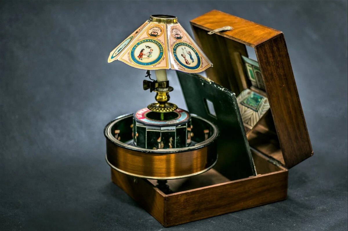 30 августа 1877 года аппарат Рейно, предваривший технологию кинематографа, был запатентован в Париже, и с тех пор этот день считается днем рождения анимации. Сегодня вновь прикоснемся к волшебству анимации, чтобы понять – что находится по ту сторону мультипликационных лент! Француз Эмиль Рейно, заимствовав вращательный барабан зоотропа Хорнера и усовершенствовав зеркальную систему фенакистископа Плато, создал новый, более совершенный прибор, назвав его праксиноскопом. Аппарат получил своё название от имени древнегреческого скульптора Праксителя. Прибор состоит из открытого цилиндра, на внутренней стороне которого размещена полоса с 8 или 12 миниатюрами. В центре цилиндра находится зеркальная призма, число сторон которой соответствует числу миниатюр. Таким образом, каждая миниатюра отражается в соответствующей грани призмы, при вращении цилиндра возникает эффект плавного движения. В 1892 году состоялся первый показ мультипликационного фильма: Рейно представил изумлённой публике, свои «
