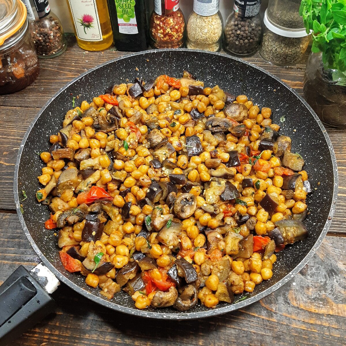 Турецкий горох с баклажанами и грибами. Пошаговый рецепт с фото.