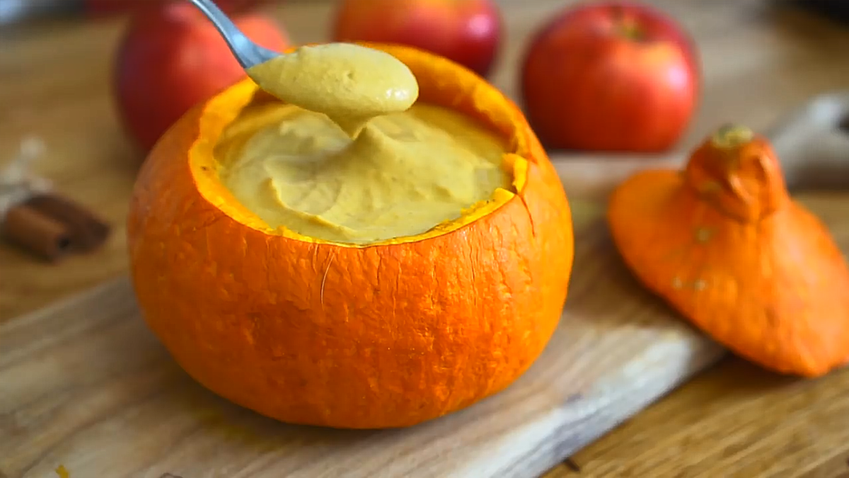 *Здесь я пишу кучу красивых и вкусных эпитетов, потом пишу, что это понравится всем без исключения, а вы должны типа такие "Вау! Ну-ка че там такое?", но на самом деле все просто сразу начинают читать список ингредиентов и смотреть че там вышло в итоге.* Погнали готовить короче. Что: Как: Тыкву лучше выбирать круглую примерно такого размера, как на первой фотке. Нужно срезать верхнюю часть и удалить все семена внутри так, чтобы там не осталось ничего кроме мякоти. И те, что остались на крышке - тоже. То есть полностью чистая тыква, готовая к тому, чтобы поместить туда начинку. Теперь яблоки. Яблоки лучше подобрать кислые. Их режем надвое, удаляем сердцевину, и режем довольно мелко, чтобы они хорошо пропеклись. Теперь перекладываем в какую нибудь тару, добавляем сушеные ягоды барбариса, корицу, гвоздику. Получается такая а-ля заготовка на глинтвейн. Также можно добавить орехи - они дадут жирности, насыщенности и калорийности блюду. Но можно обойтись без них. Я буду использовать грецкие