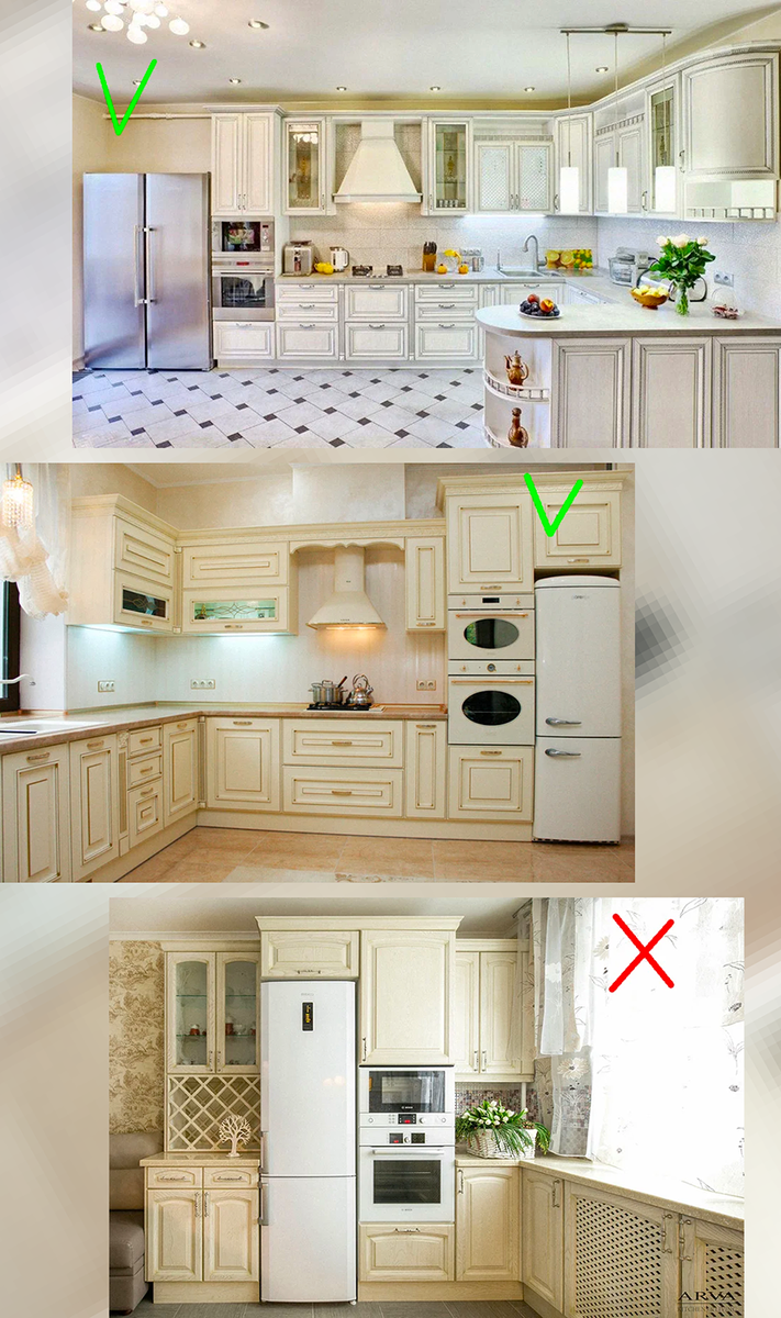 На кухне, в большинстве случаев, холодильник является самым крупным бытовым прибором, да, пожалуй, и во всей квартире/доме. Поэтому так важно определиться с местом куда его поставить, что им было удобно пользоваться и одновременно он смотрелся эстетично.