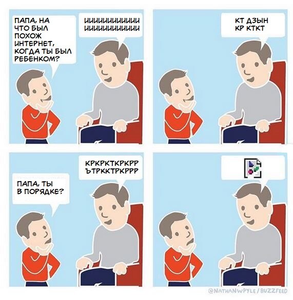 Сегодня хотелось бы вас познакомить с таким художником как Nathan W Pyle. Это амереканский илюстратор, который так же является автором нескольких бестселлеров по версии газеты New York Times. В его работах вы наверняка встретите ситуации, которые происходили с вами. Вы смотрите на комикс этого автора и думаете: "точно, у меня же была такая же мысль". Его умению попадать в аудиторию можно просто позавидовать. О чем я говорю? Смотрите, каждому кто вырос в 90-е знаком звук интернет соединения. Его ни с чем не спутать, он как запах мандаринов на новый год. Но к сожалению, современным детям эта ситуация не знакома. Складываем все факты и вуаля: Работы данного художника не всегда основаны на чём-то жизненном. Иногда это просто интересная мысль, которая перерастает в собственную историю, будь то фантазии о футболистах, разговор с волками или осьминог дающий интересные объявления. Но как говориться: "лучше один раз увидеть, чем 7 раз услышать", так? На этом сегодня все. Спасибо, что дочитали