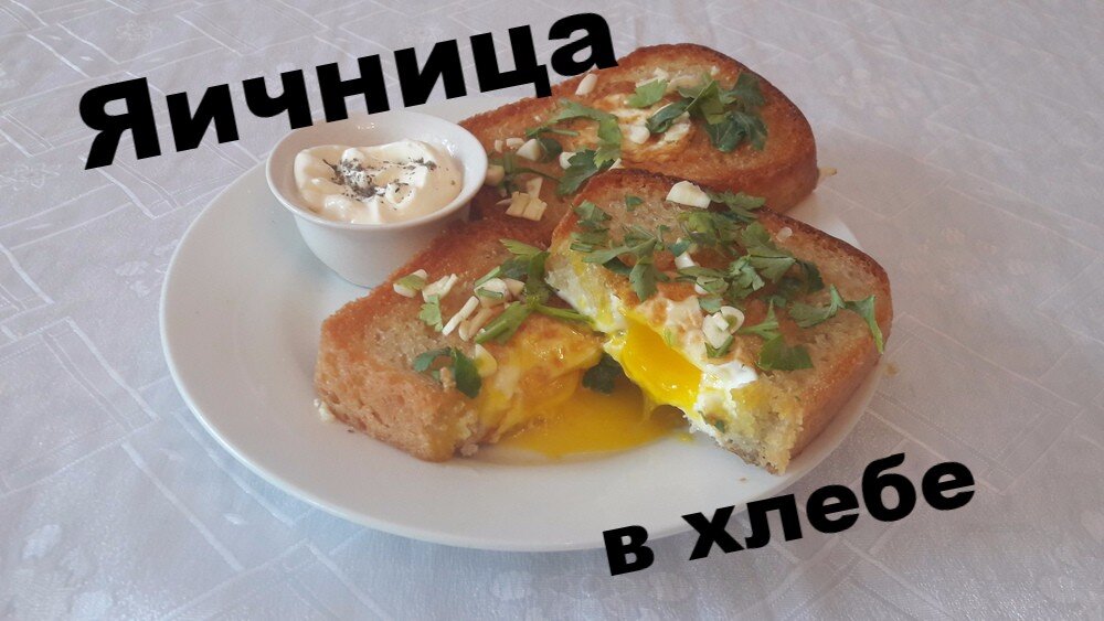 Предлагаю вам сытный завтрак на скорую руку. Быстро готовим на сковороде яичницу в хлебе. Рецепт приготовления необычного завтрака. Для начала возьмем два ломтика хлеба и сделаем по середине отверстие ножом. Вливаем растительное масло в сковороду и прогреваем, выкладываем хлеб и поджариваем до золотистого цвета с одной стороны. В дырочку обжаренного хлеба вбиваем яйцо, солим и перчим. Через две минуты переворачиваем хлеб на другую сторону и жарим еще пару минут, посыпаем чесноком и зеленью. Быстрый завтрак готов, приятного аппетита!