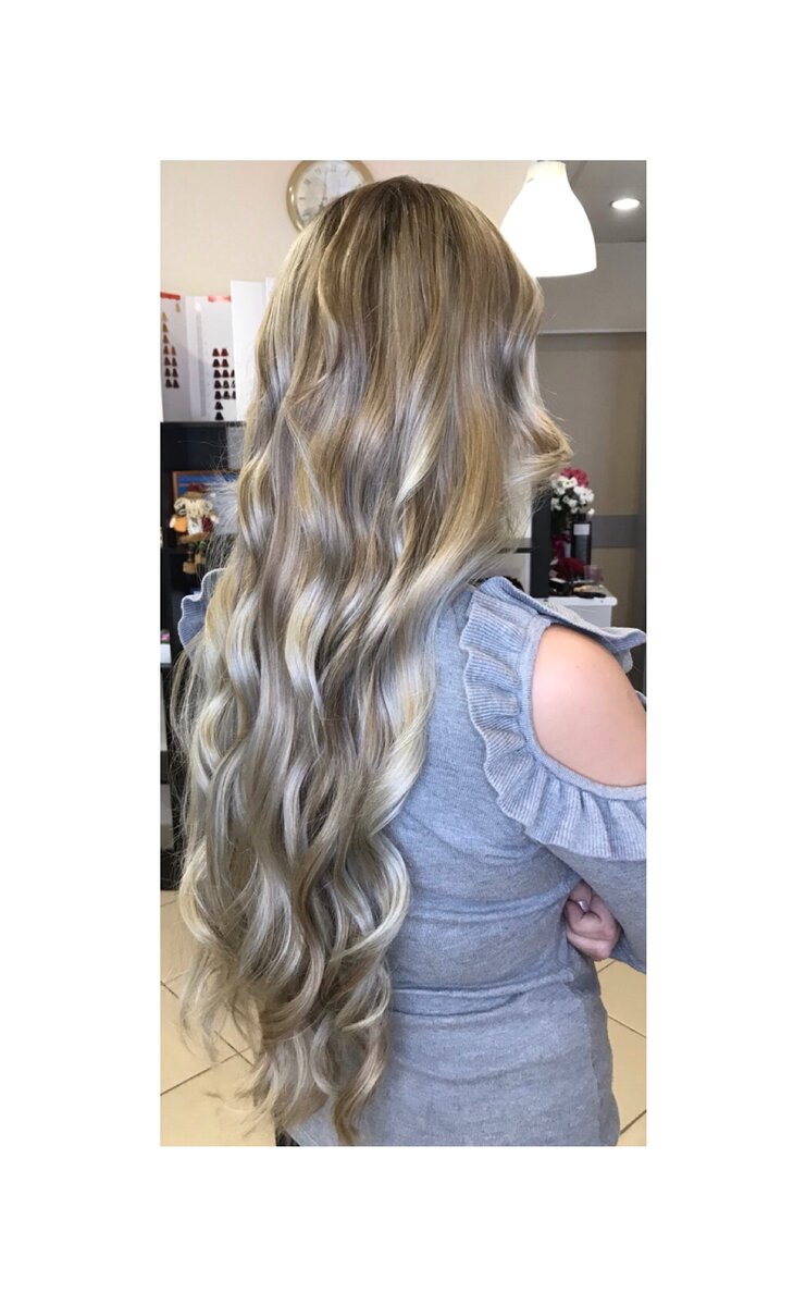 На длину два варианта: цветовая баня с холодным оттенком (что бы не провалилось в серый на самых белых прядях)