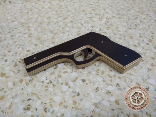 Сыну пистолет понравился. Не думаю, что он будет долго им заниматься, но ему было интересно собрать действующий механизм, тем более, что это был его первый опыт с «деревянной механике». Теперь во всех углах его комнаты валяются разноцветные резинки.