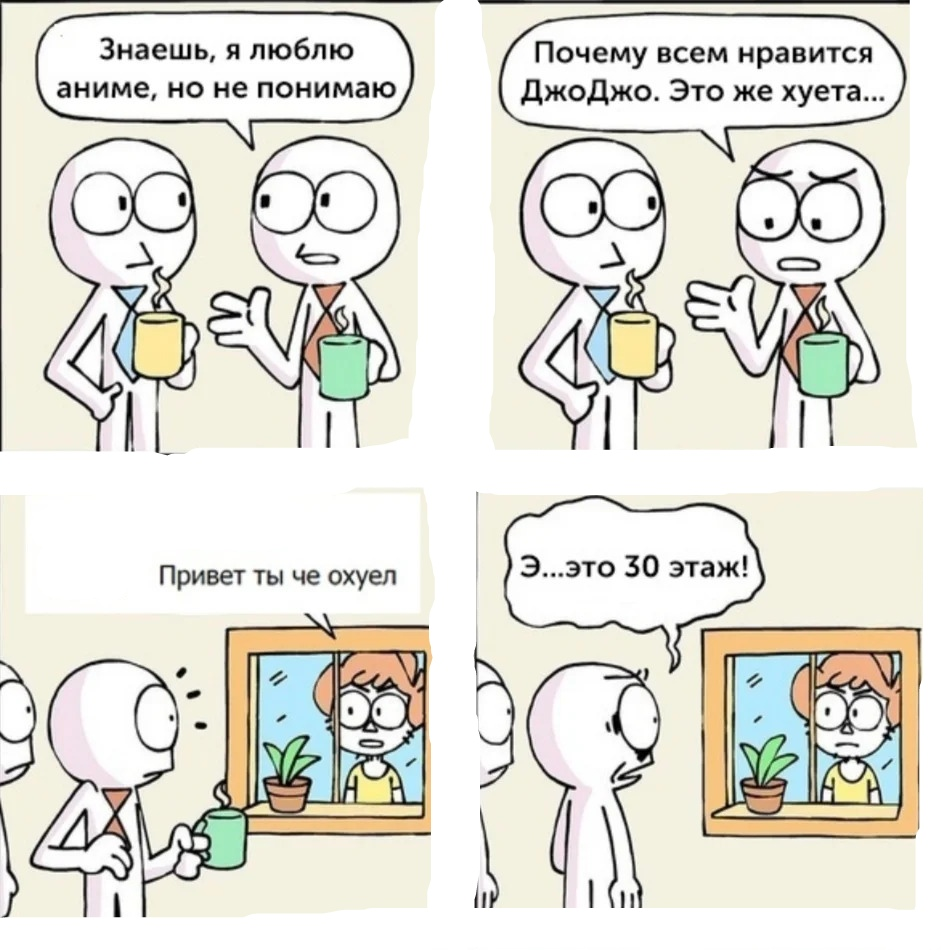 Вечер добрый братик! Это уже и это уже 22 пост по моей рубрике " Смешные мемы из аниме " И она существует только благодаря тебе и твоей активности! За это я благодарен тебе и хочу сказать спасибо, ведь ты меня вдохновляешь писать новые посты. И я для тебя снова собрал 15 самых смешных мемасиков по нашей любимой рубрике аниме. А все мемы из этой группы вк - "Да я Отаку". 1. 2. 3. 4. 5. 6. 7. 8. 9. 10. 11. 12. 13. 14. 15. Ну, а на сегодня всё! Если вам понравился данный пост то прошу вас поставить лайк и подписаться на мой канал и напишите пожалуйста свой комментарий. Ну, а я пошёл делать постик на завтрашний день. Всем спасибо за то, что уделили время моему посту! Оцените мои прошлые посты : Смешные мемы из аниме 21 Смешные мемы из аниме 14 Смешные мемы из аниме 5