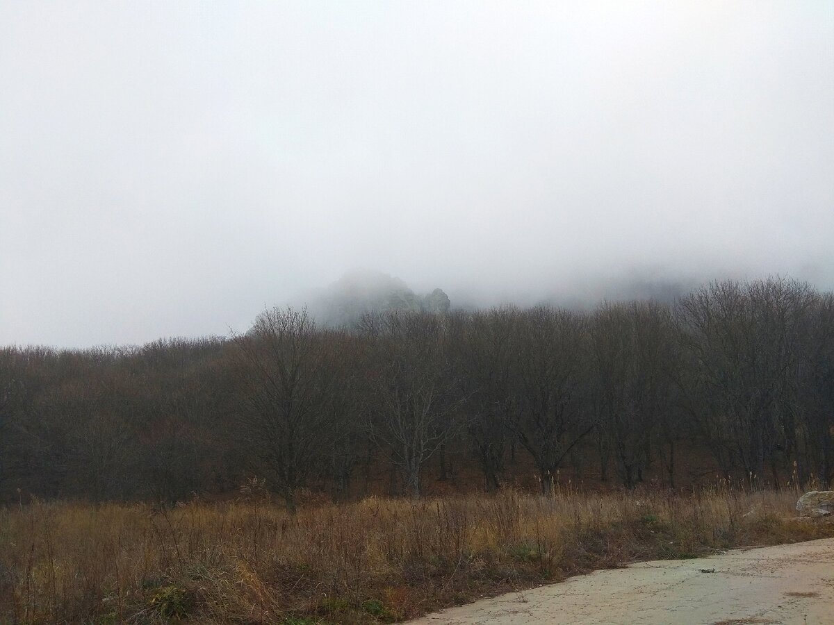 Предзимье. Уже давно темнеет всё раньше и раньше, а на Кавказе, так и в пять вечера скоро будет совсем ночь. На той неделе ездил прогуляться по ноябрьскому лесу под горой Бештау. В этот раз лес мне показался каким-то по-особому мрачным. Как будто бы в ожидании чего-то. И природа не ошиблась - буквально через пару дней налетел циклон с похолоданием и ветром, который принёс нам лёгкий снег и обледенение дорог. Но тогда пока ещё было сухо, хоть и пасмурно, или даже сумрачно. И уже холод спешил занять своё место. Сейчас в лесу самые яркие пятна - это остатки зелени в подстилке, да мшистые пни и поваленные деревья. Но дальше в чащу всё становится более серое и мрачное. Впереди сквозь туман проступают силуэты Орлиных скал. Словно какой-то призрачный замок встают они впереди своей неприступной стеной. Неправда ли, выглядит это всё зловеще? Вот и мне так показалось. Но в каждое время года природа особенная и интересно запечатлеть её в любом состоянии... Ладно, пора возвращаться обратно домой.