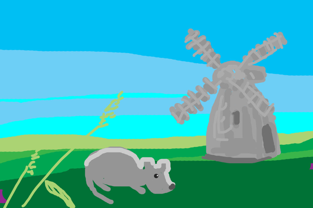 Как вдруг стены мельницы затряслись, задрожали, и откуда ни возьмись появились мыши! Сотни, тысячи маленьких серых мышек. Они превратились в один сплошной поток. Подхватили людей и понесли их, как бурная река. Муж с женой схватились за руки и увидели как высоко вдруг поднялся потолок, а мыши стали просто огромными! Мыши понесли людей в щель в стене, а далее по своим мышиным норам куда-то вглубь. И вот мыши принесли их в большую пещеру. Туда же принесли и всю муку с мельницы.