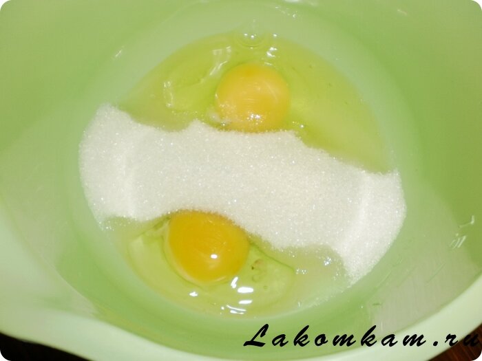 Приготовление американского пирога с чёрной смородиной. Куриные яйца и сахар