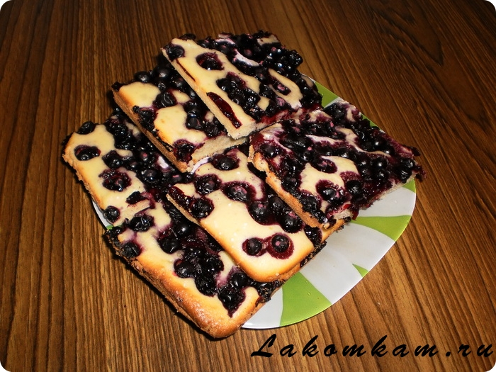 Засыпаем его смородиной, верх посыпаем немного мукой и сахарной пудрой.