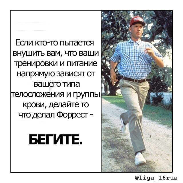 Существует ли хоть одно доказательство того, что диеты и тренировки по типу телосложения и группе крови эффективнее остальных? Неа. Ни одного. Вот прям вообще ни единого. Вы можете смело игнорировать подобную информацию, если вдруг на неё наткнетесь. Помните, что основные принципы питания и тренировок одинаковы ДЛЯ ВСЕХ. И если вы вдруг думаете, что вам не удается добиться успеха из-за плохой генетики, то вы, к сожалению, не там копаете.