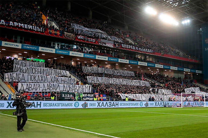 Гончаренко пропускал матч, но болельщики ЦСКА выкрутились: сделали картонного тренера и баннеры с его выкриками