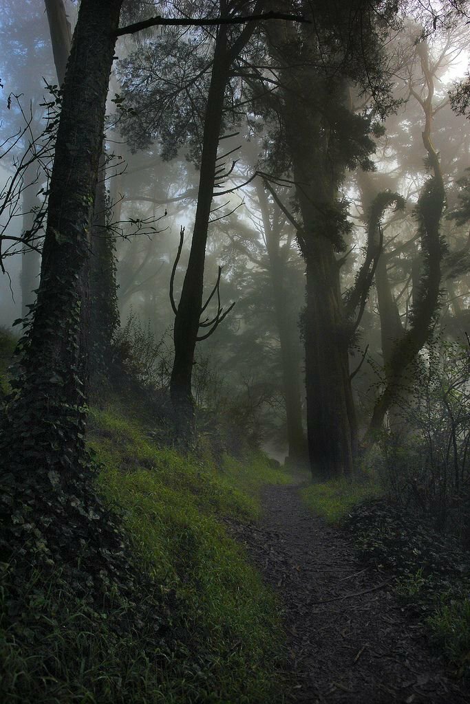 Туман поднялся ещё выше, окутывая теперь кроны деревьев.