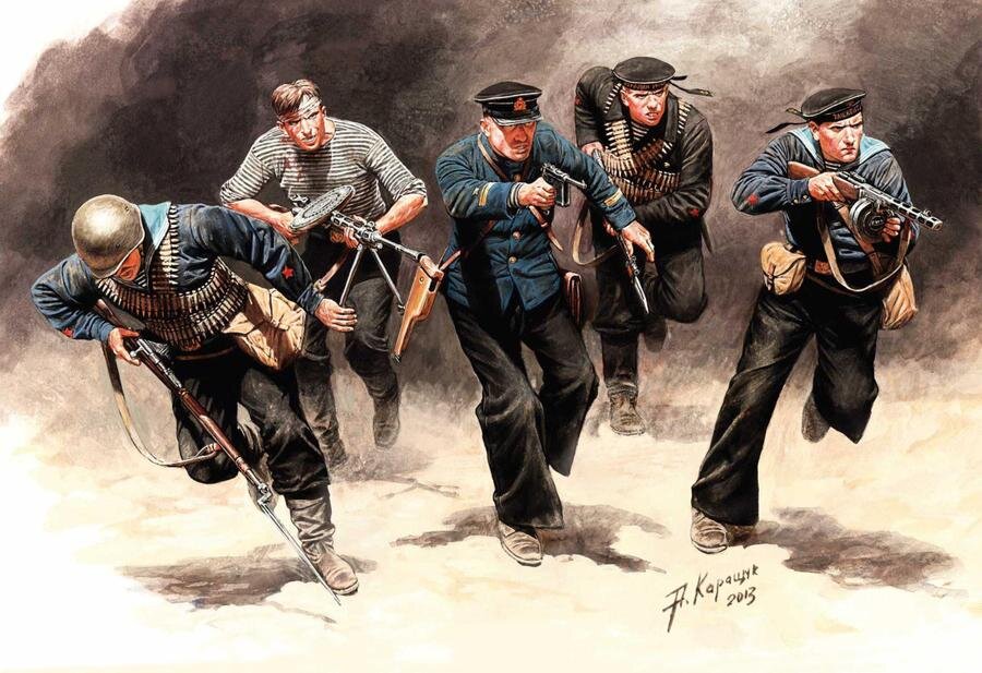 В соответствии с Постановлением Государственного Комитета Обороны от 18 октября 1941г. сформировано более 30 морских бригад, а к концу 1942г. их стало около 40. Создаваемые подразделения и части из моряков действовали в десантах на приморских участках и на сухопутных фронтах. За годы войны высажено 118 морских десантов. Кроме того, морские пехотинцы принимали участие в защите Лиепаи, Таллинна, Кронштадта, Одессы, Николаева, Севастополя, Керчи. Новороссийска, Москвы, Сталинграда, Ленинграда, Мурманска и других населенных пунктов.