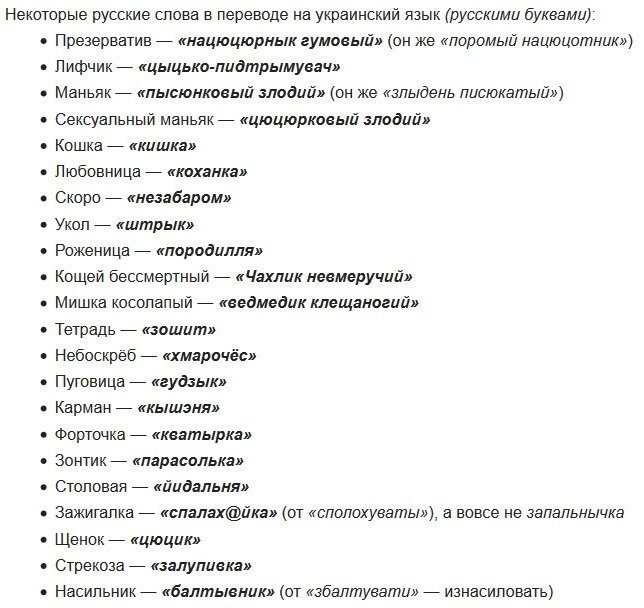 Забавный язык Украины, когда переводишь его с русского. Для поднятия настроения почитайте перевод некоторых слов и просто вывески на улицах Украины. Также можете посмотреть забавные карикатуры в моем профиле Карикатура с юмором, интеллектуальный юмор