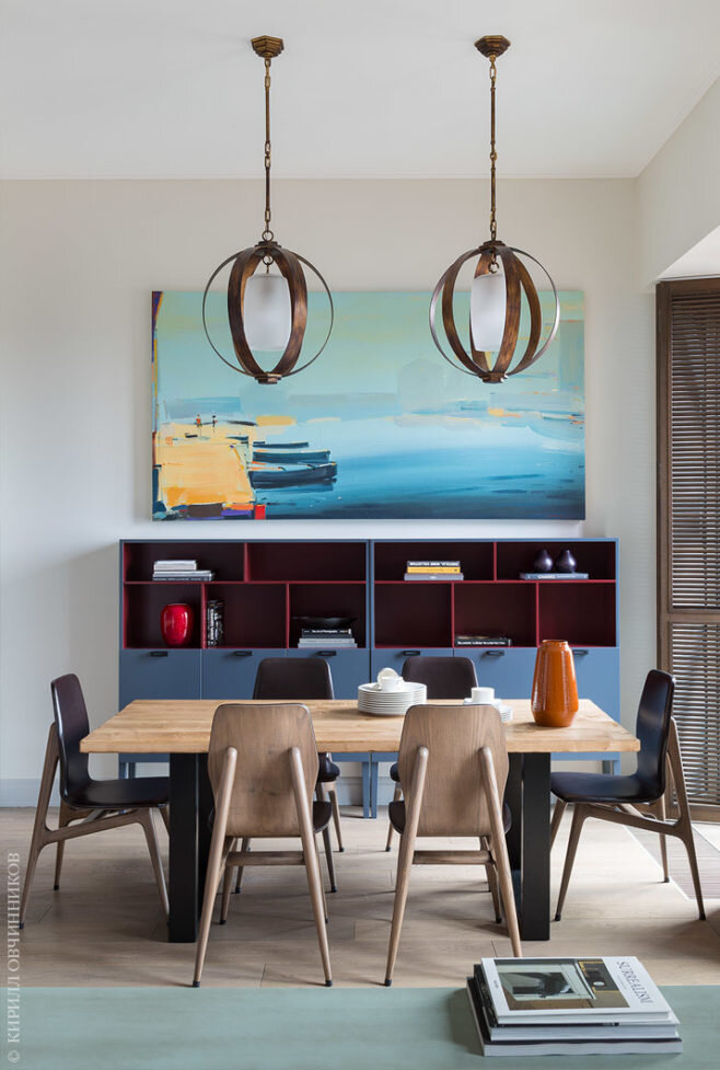 По проекту застройщика в этой квартире предполагалась одна спальня. Дизайнеры нашли место для второй, не потеряв ощущение простора. Над этим интерьером трудилась целая команда архитекторов и дизайнеров бюро I.D. Interior Design — Инга Аршба, Дарья Широкова и Елена Курникова. Работалось им, как они сами говорят, легко во многом благодаря хорошей внутренней архитектуре квартиры и дома, в котором она расположена. Комплекс “Садовые кварталы” разрабатывали семь знаменитых российских компаний, среди которых Sergey Skuratov Architects, “Проект Меганом”, “СПиЧ”, — рассказывают авторы проекта, — и высокий уровень чувствуется во всем: в качестве строительства, в грамотных инженерных решениях и в организации работы в целом”. В квартире достаточное количество окон, хорошая высота потолков и все продумано так, что не было бы смысла менять планировку, если бы заказчикам не потребовалась дополнительная спальня. Чтобы разместить ее без ущерба для остальных помещений, дизайнерам пришлось рассмотреть не