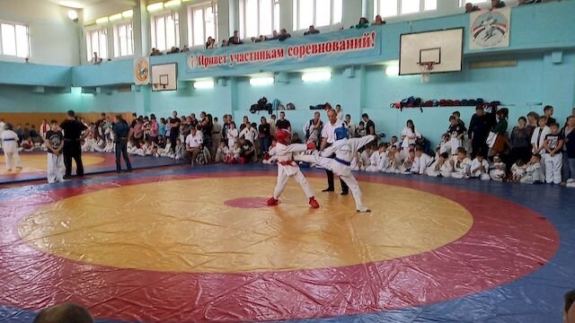 С золотой медалью вернулась воспитанница ДЮСШ посёлка Красная Поляна Елизавета Злобина с всероссийских соревнований по армейскому рукопашному бою в удмуртском городе Можге. Всего в турнире, посвящённом столетию со дня рождения легендарного оружейника Михаила Калашникова, приняли участие без малого полтысячи бойцов в возрасте от восьми до двадцати пяти лет из десяти регионов России, в том числе – из Пермского края, Татарстана и Московской области. При этом награда Елизаветы оказалась не единственной в копилке краснополянской команды: воспитанники ДЮСШ Арина Нагаева и Сабина Романовская заняли в своих весовых категориях вторые места, а Алсу Романова и Евгения Хмелёва завоевали «бронзу». Фото: vk.com/vp_pravda.